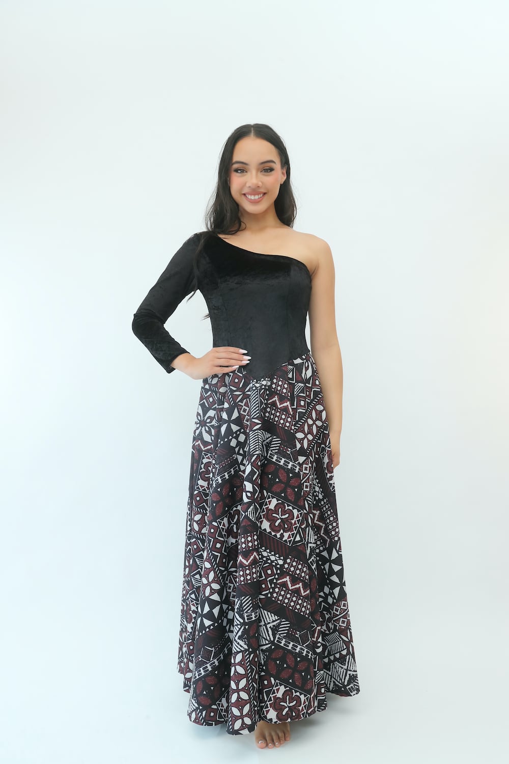 エレガンスと力強さを併せ持つワンショルダードレス。 上身頃には、しっとりとした光沢が美しい ベロア生地 を使用し、動きに合わせて奥行きのある輝きを放ちます。 滑らかに身体へ沿う素材が、腕や肩のラインを美しく見せ、ワンショルダーのデザインと相まってステージでも強い存在感を放つ一着です。 スカート部分にはタパ柄プリントを採用。伝統的なモチーフをモダンに配置した柄は、踊るたびに優雅なフレアとともに立体的に表情を変え、曲の世界観を豊かに彩ります。 型番:MDFB201 【使用生地】 無地 ベロア#300ブラック 柄 ORDB-001 brown 【サイズ】 XS バスト 72 ウエスト 58 ヒップ78 S バスト 78 ウエスト 64 ヒップ92 M バスト 84 ウエスト 70 ヒップ90 L バスト 90 ウエスト 76 ヒップ 96 受注生産のため、お届けまでに1〜1.5ヶ月ほど頂いております。 ご注文数によってはさらにお時間をいただく場合もございますのでご了承ください。 ご使用日などがございましたら、予めご相談ください。 下記よりサイズ、丈、生地をご選択ください。 *複数ご購入の場合は「カートに入れる」をクリックした後の画面で数量を変更できます。 *イージーオーダーをご選択いただいた場合は、ご注文完了後にサイズ記入表をEメールにてお送りいたします。