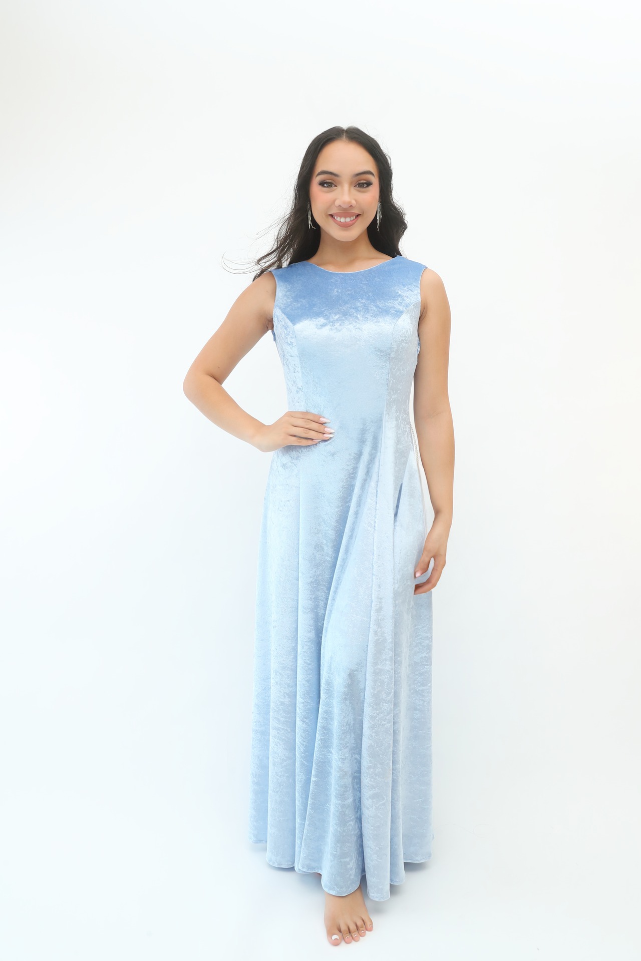ベロア生地を使用した、高級感溢れるストレッチドレスです。